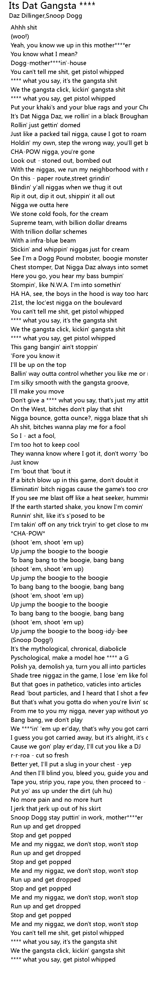 See I'm a Dogg Pound mobster, boogie monster |