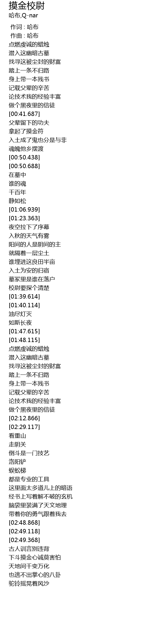 | [02:51.869] | 下斗摸金心诚莫害怕 |