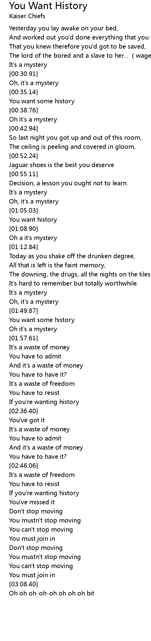 | [00:37.45] | You want some history |