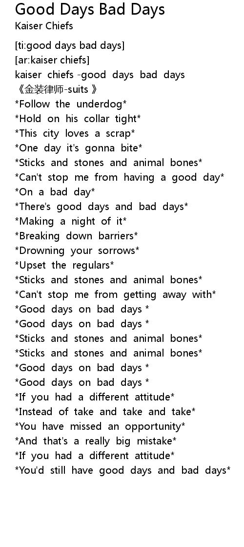 | [00:01.375] | kaiser chiefs -good days bad days |
