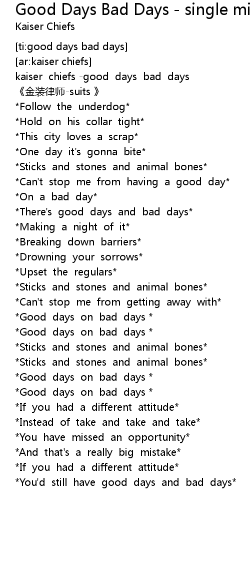| [01:51.113] | Good days on bad days |