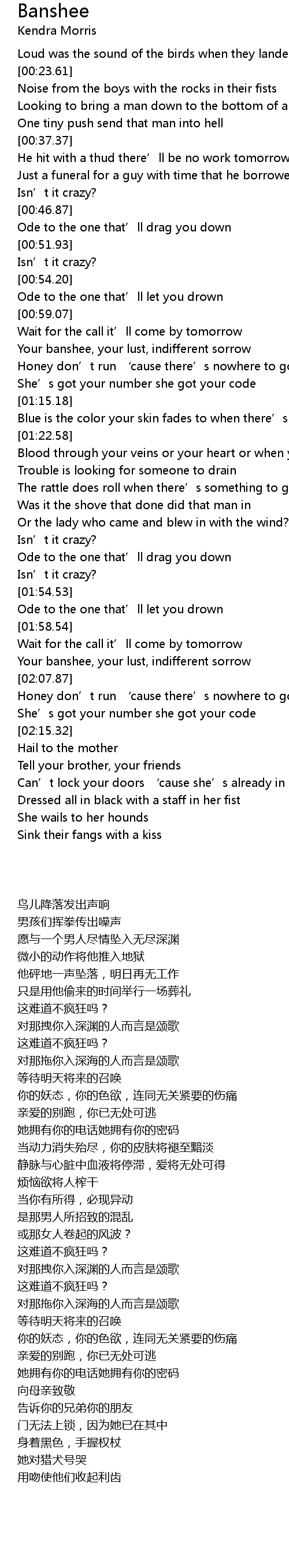 | [02:04.50] | Your banshee, your lust, indifferent sorrow |