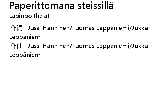 | [00:00.000] | 作词 : Jussi Hänninen/Tuomas Leppäniemi/Jukka Nakari/Antti Leppäniemi |