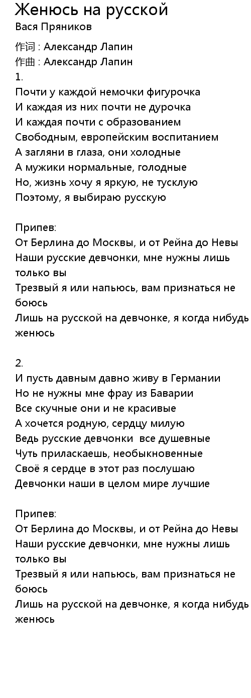 Лишь на русской на девчонке, я когда нибудь женюсь |
