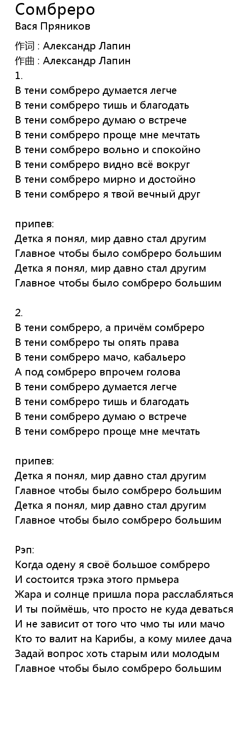 Когда одену я своё большое сомбреро |