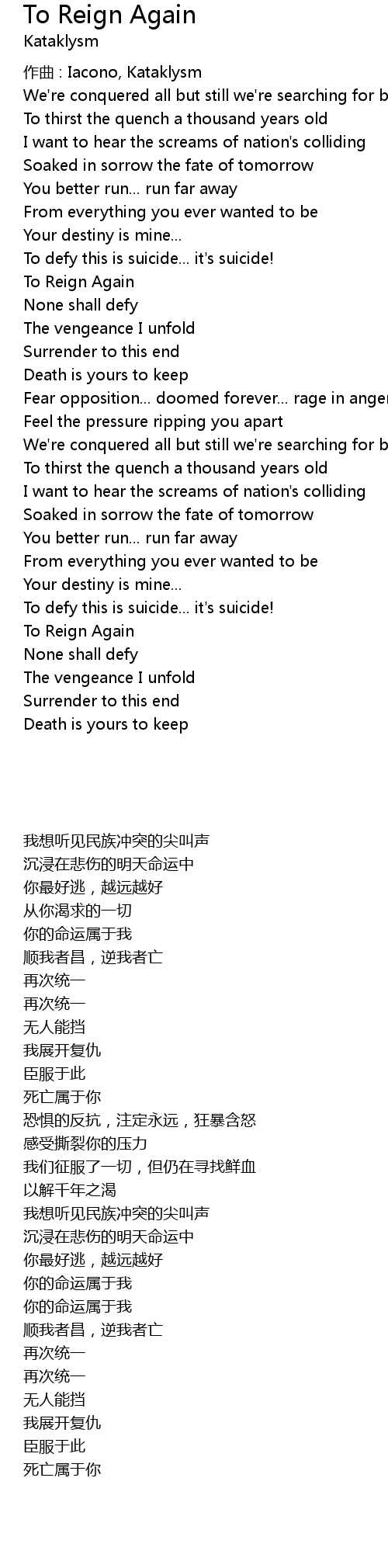 | Song | To Reign Again |