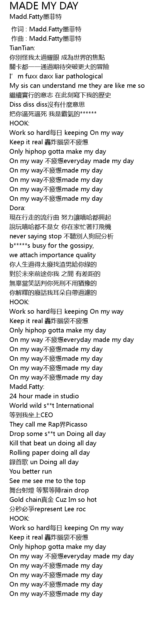 | [01:36.124] | On my way bù pí bèi everyday made my day |