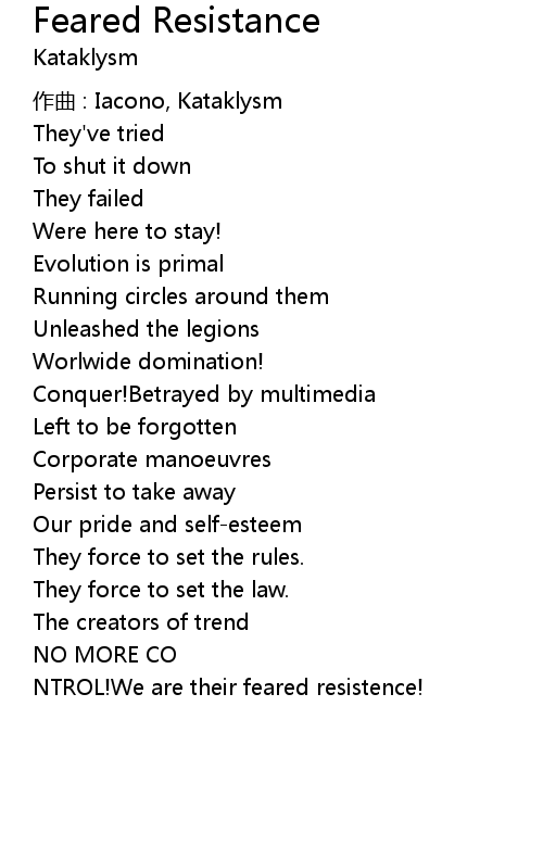 | Song | Feared Resistance |