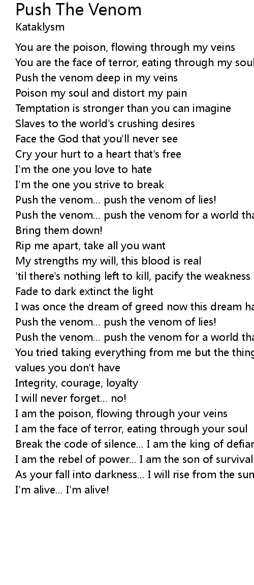 Push the venom... push the venom for a world that's dies... |