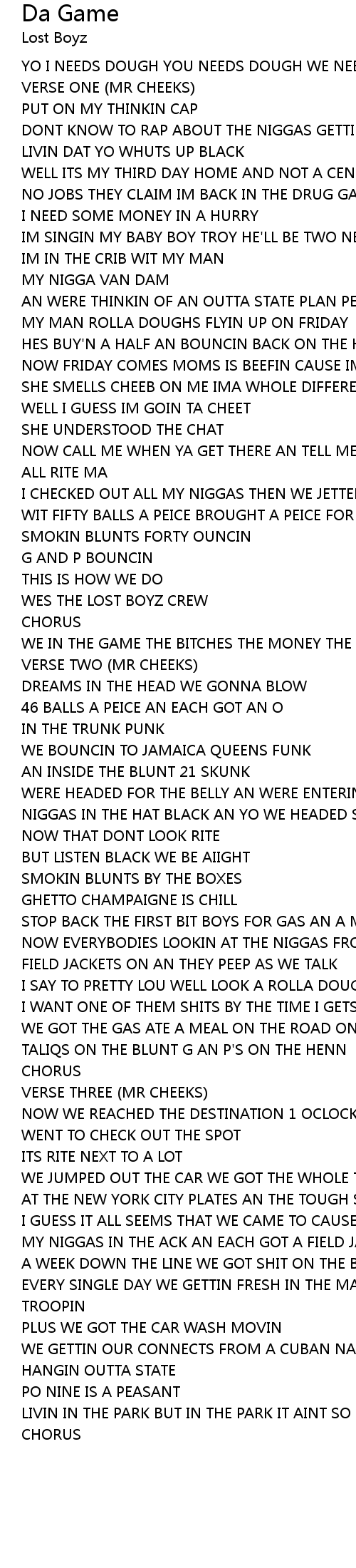 Da Game Lyrics