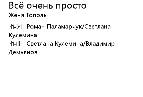 | [00:00.000] | 作曲 : Светлана Кулемина/Владимир Демьянов |