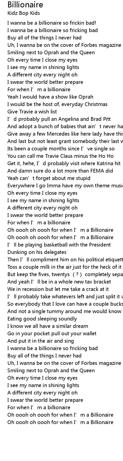 | [01:41.50] | Oh oooh oh oooh for when I’m a Billionaire |