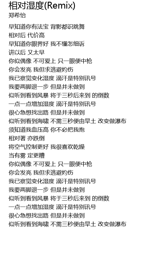 | Song | 相对湿度(Remix) |