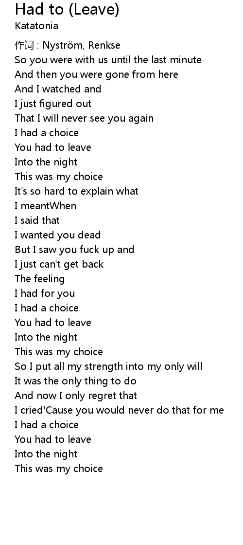 | You had to leave | |