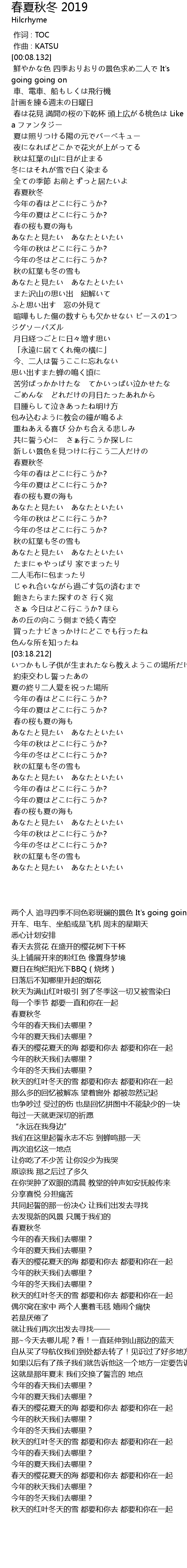 | [02:37.409] | 今年の秋はどこに行こうか? |