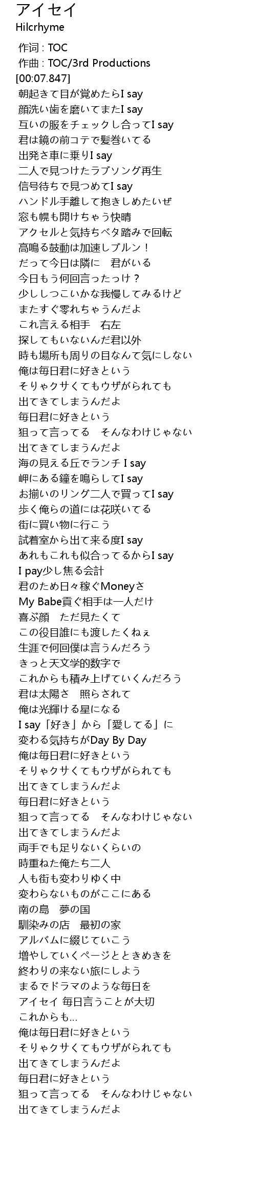 | [02:47.753] | I say「好き」から「愛してる」に |