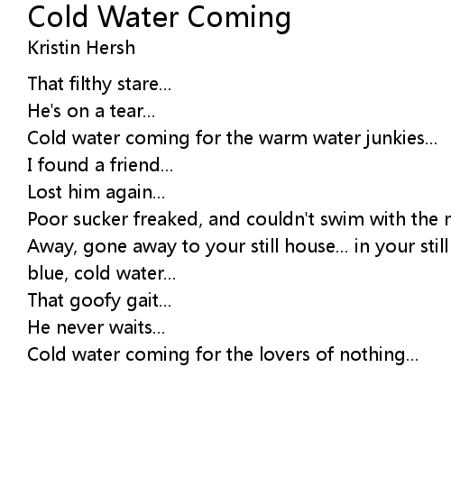 | Song | Cold Water Coming |