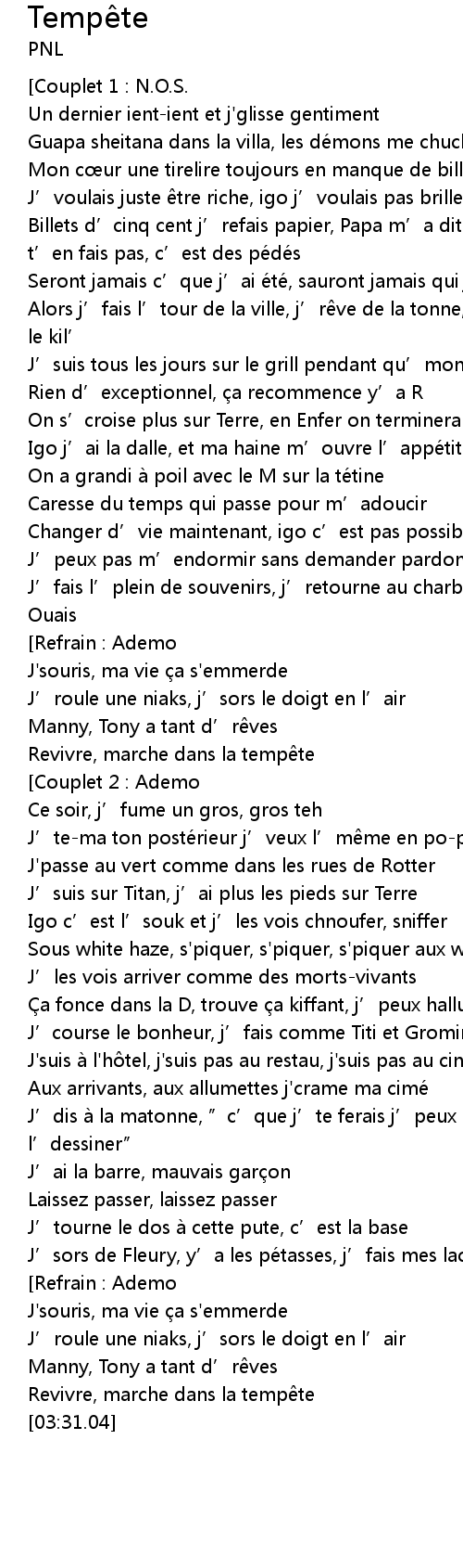 | [01:38.58] | J’roule une niaks, j’sors le doigt en l’air |