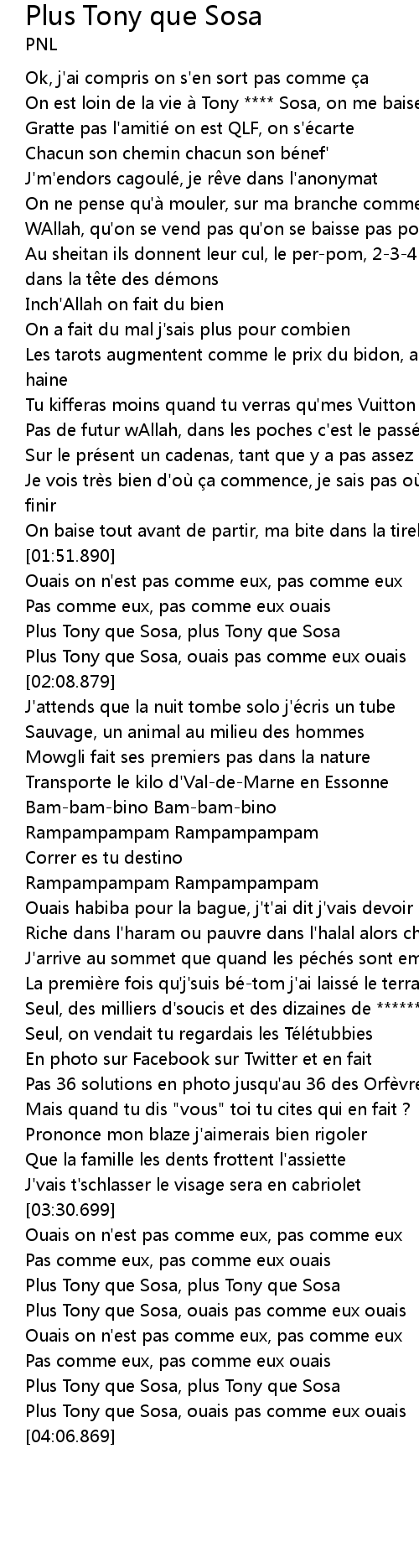 | [02:04.760] | Plus Tony que Sosa, ouais pas comme eux ouais |