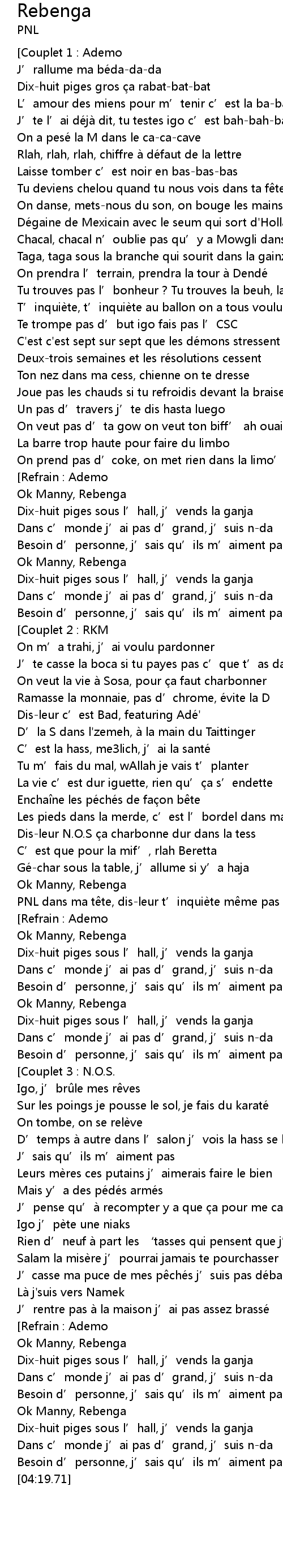 | [02:20.67] | PNL dans ma t te, disleur t' inquiè te m me pas |