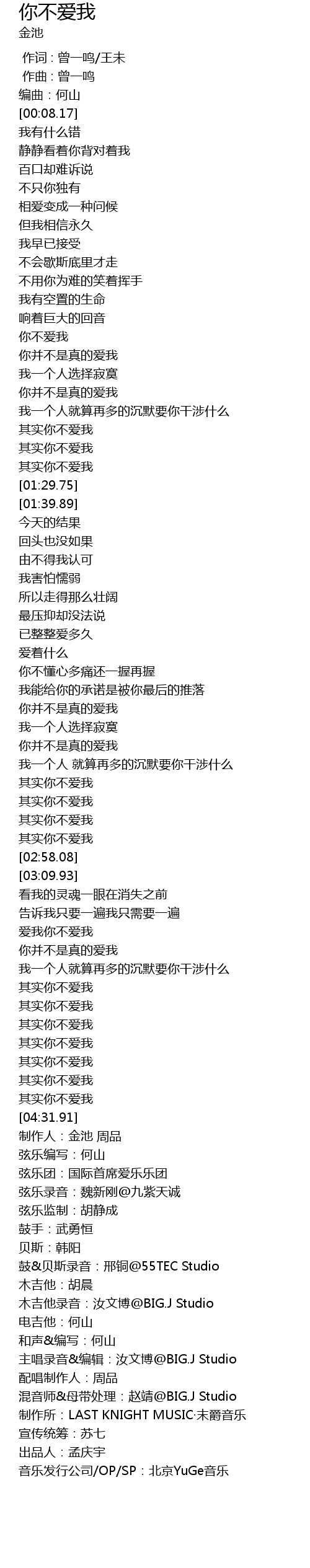 | [04:09.37] | qí shí nǐ bù ài wǒ |