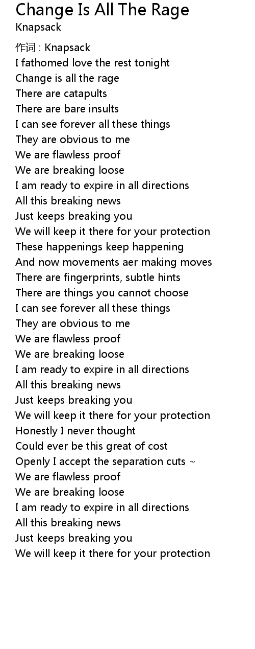 | Song | Change Is All The Rage |