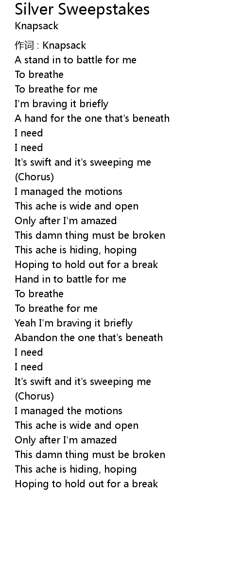 | Song | Silver Sweepstakes |
