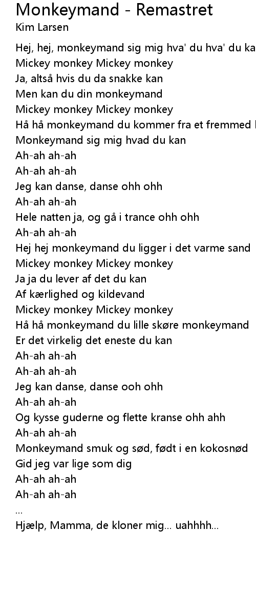 | Hej, hej, monkeymand sig mig hva' du hva' du kan | |