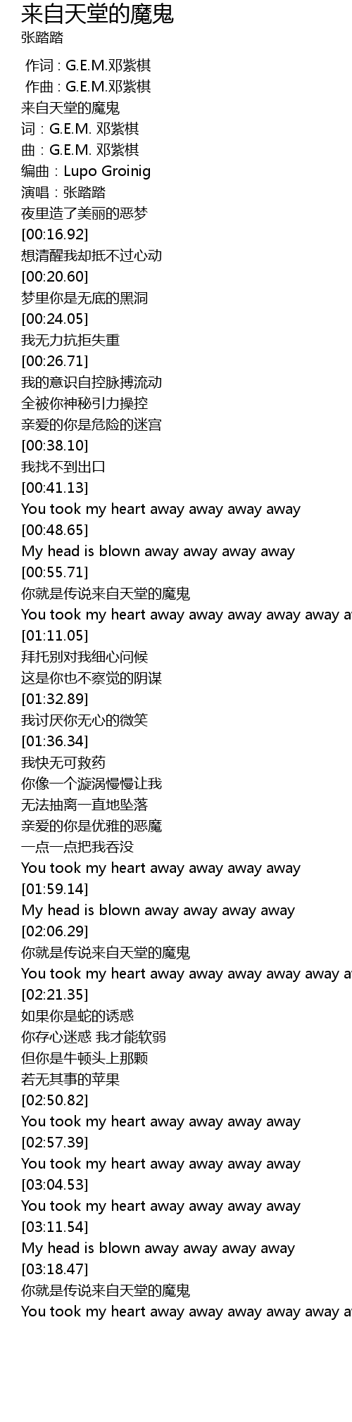 | [00:03.16] | 曲:G.E.M. 邓紫棋 |