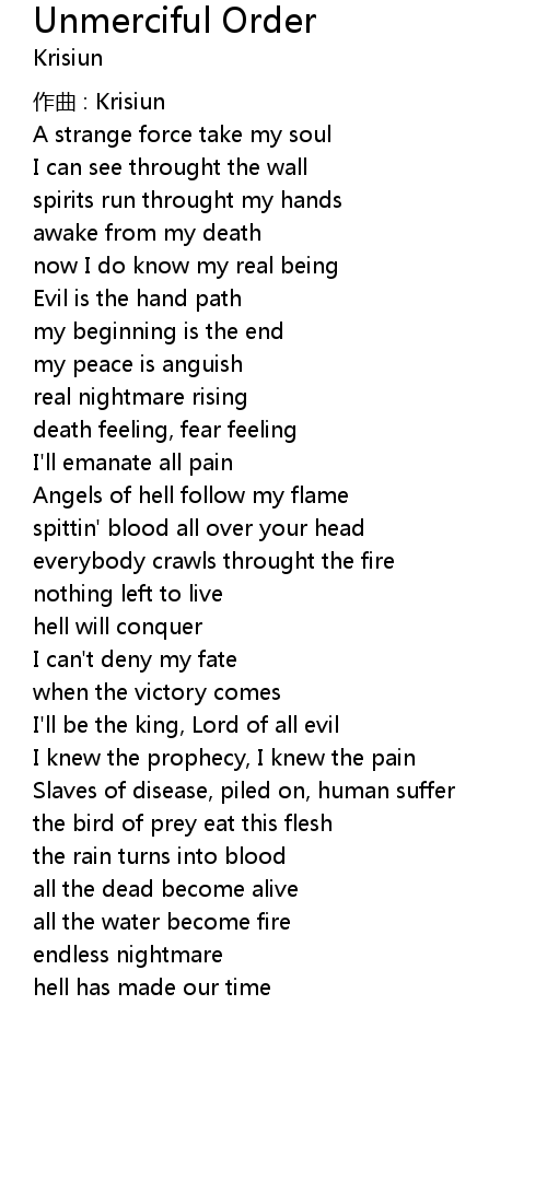 | Song | Unmerciful Order |