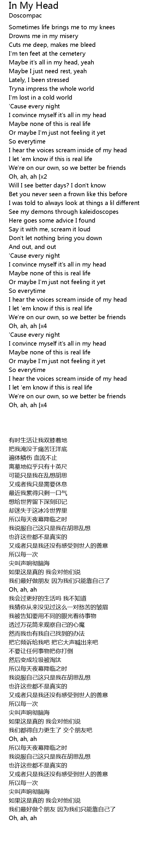 | [00:27.48] | Maybe it's all in my head, yeah |
