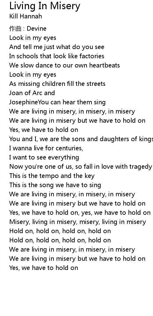 | Misery, living in misery, misery, living in misery | |