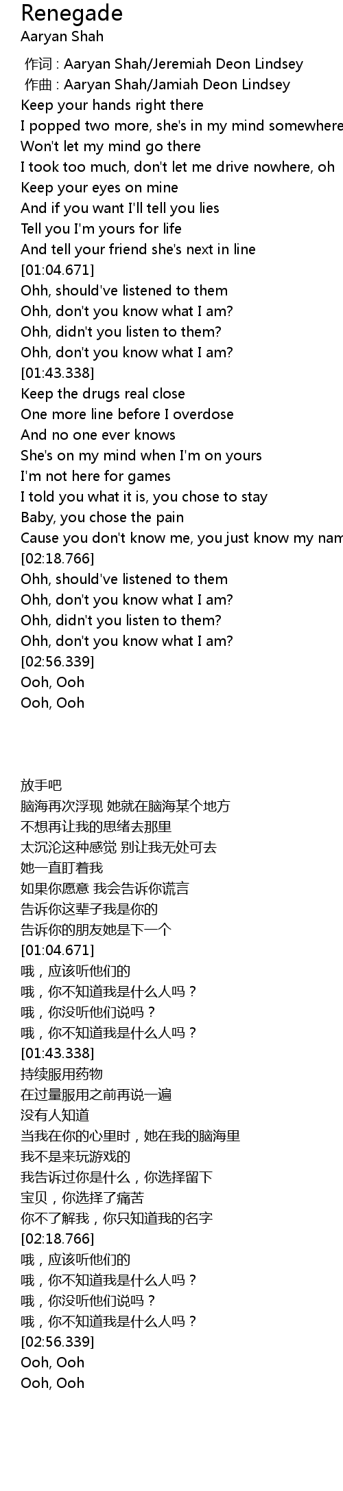 | [00:01.000] | zuo qu : Aaryan Shah Jamiah Deon Lindsey |