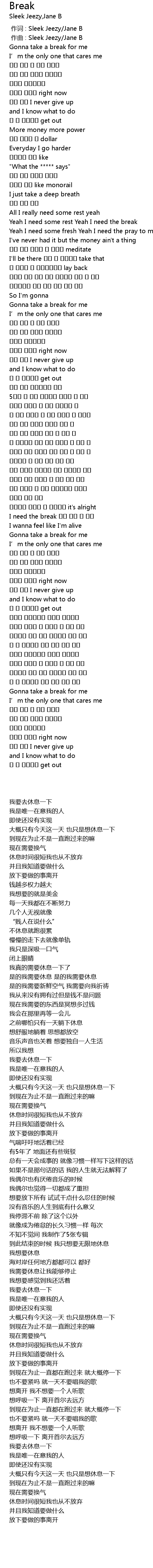 | [00:52.396] | Yeah I need some rest Yeah I need the break |