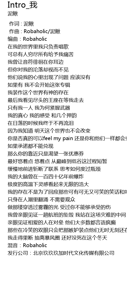 | [00:01.000] | 作曲 : Robaholic/泥鳅 |