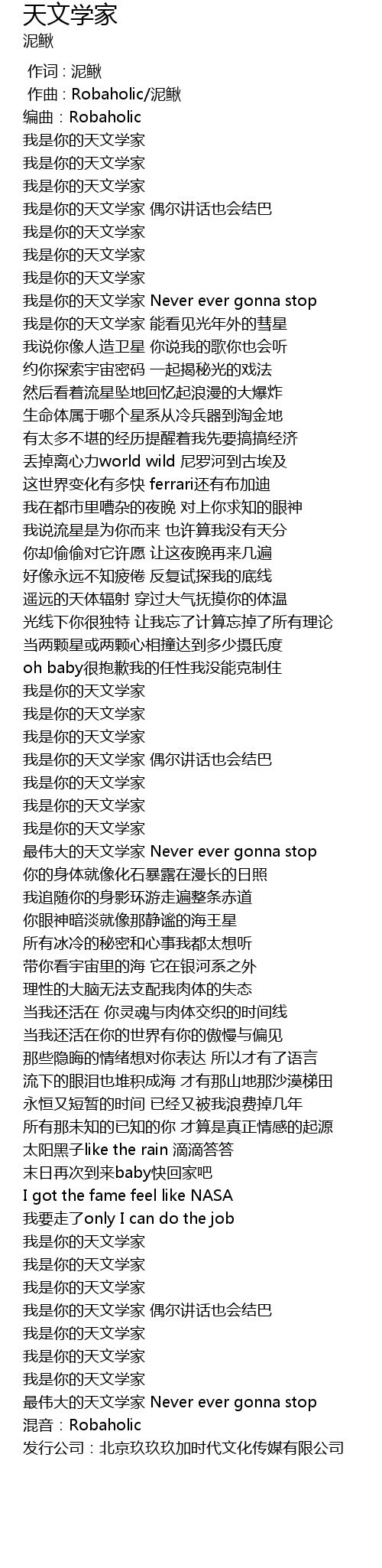 | [00:45.52] | 我是你的天文学家 Never ever gonna stop |