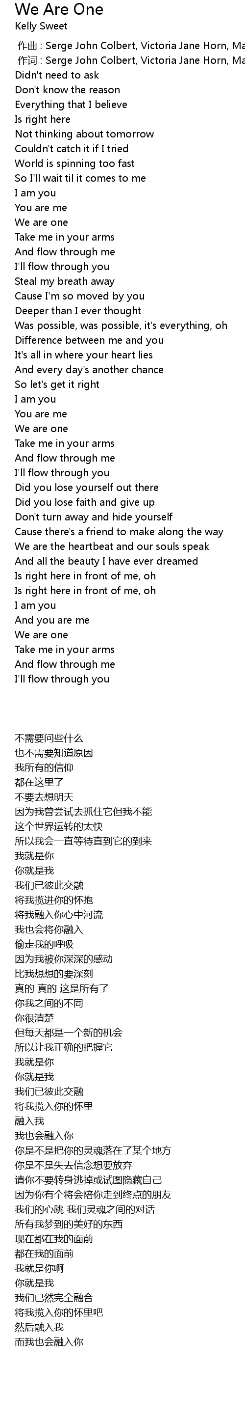 | [00:50.800] | We are one |
