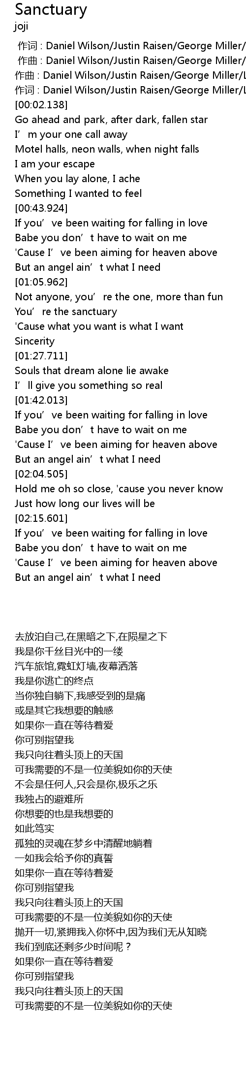 | [00:00.000] | zuo qu : Daniel Wilson Justin Raisen George Miller Luke Niccoli |