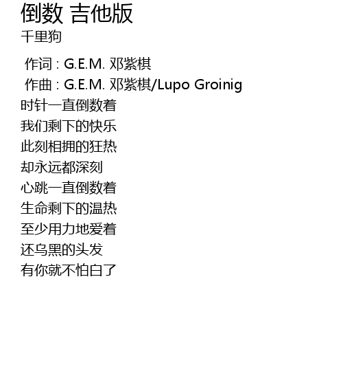 | [00:00.000] | 作词 : G.E.M. 邓紫棋 |