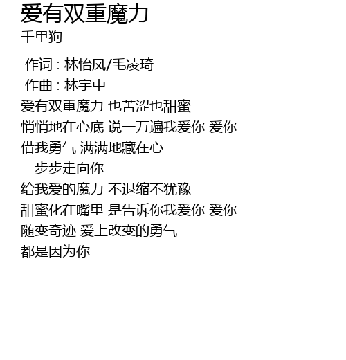 | [00:15.675] | 给我爱的魔力 不退缩不犹豫 |