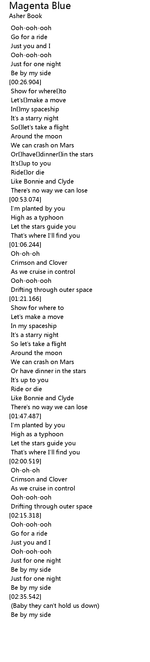 | [02:05.120] | Crimson and Clover |