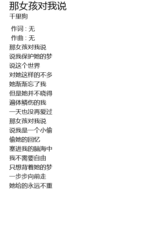 | [00:00.927] | nà nǚ hái duì wǒ shuō |