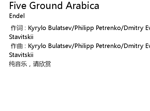 | [00:01.000] | zuo qu : Kyrylo Bulatsev Philipp Petrenko Dmitry Evgrafov Oleg Stavitskii |