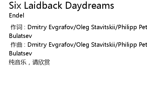 | [00:01.000] | zuo qu : Dmitry Evgrafov Oleg Stavitskii Philipp Petrenko Kyrylo Bulatsev |
