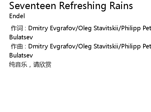 | [00:01.000] | zuo qu : Dmitry Evgrafov Oleg Stavitskii Philipp Petrenko Kyrylo Bulatsev |