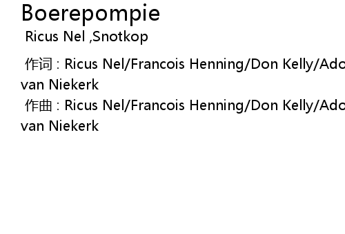 | [00:00.00-1] | 作词 : Ricus Nel/Francois Henning/Don Kelly/Adolf Vorster/Dirk van Niekerk |