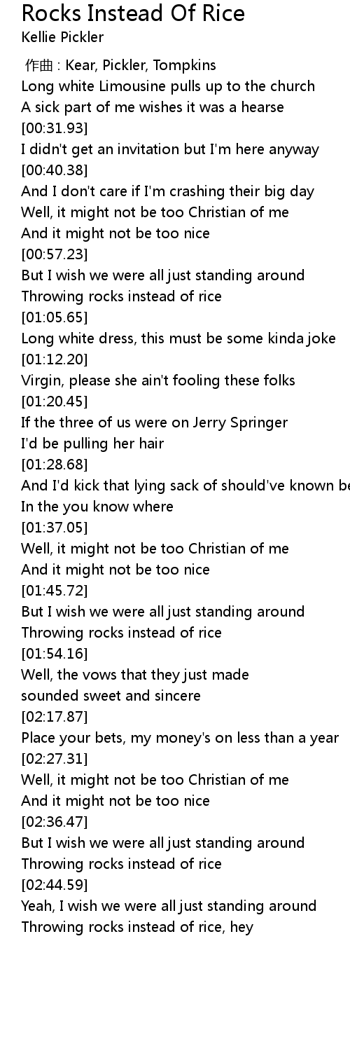 | [02:49.71] | Throwing rocks instead of rice, hey |