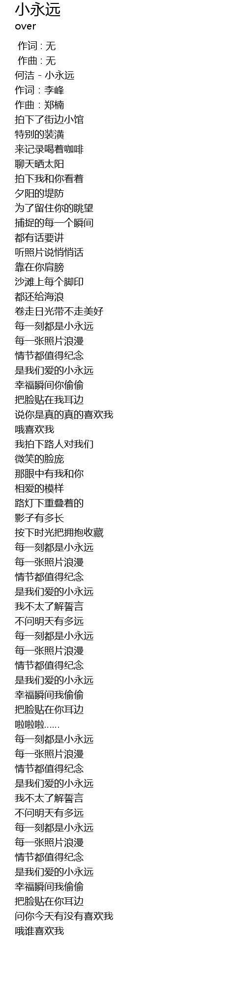 | [00:02.497] | hé jié xiǎo yǒng yuǎn |