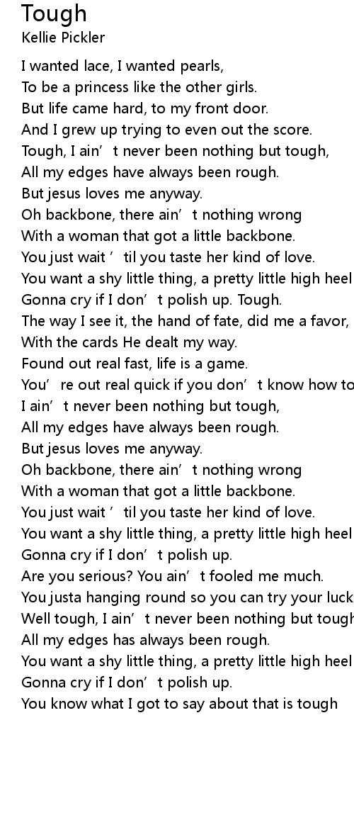 | [02:21.06] | Well tough, I ain’t never been nothing but tough, |