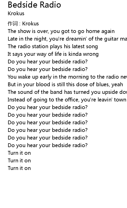 | Song | Bedside Radio |